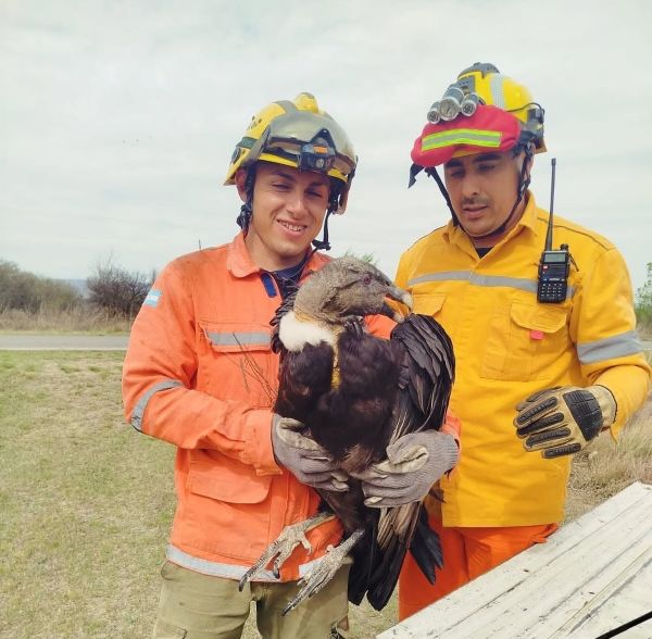 Efectivos de los Bomberos Voluntarios de Salsacate intervinieron en el paraje Bajo de los Corrales, sobre la Ruta Provincial N.º 15, para rescatar un cóndor andino (Vultur gryphus) que presentaba una lesión en una de sus alas.