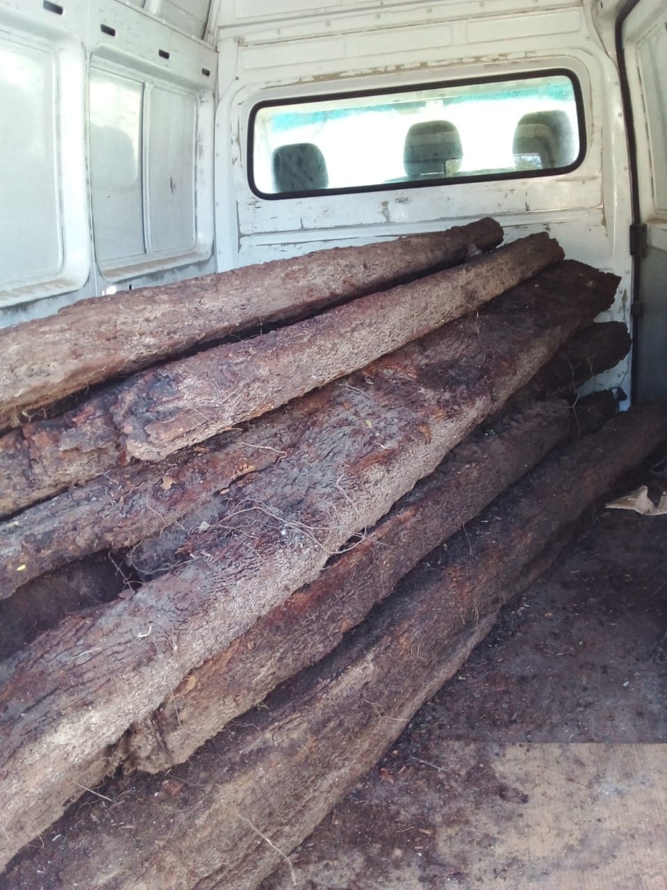 En Ruta S-307 de Conlara, personal policial procedió a la aprehensión de un hombre de 52 años y de una mujer mayor de edad, quienes se conducían en un vehículo utilitario Mercedes Benz, transportando 13 durmientes (foto) de ferrocarril.