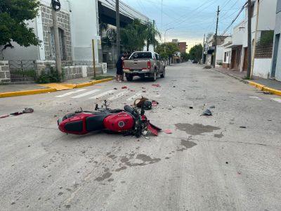 El siniestro ocurrió este domingo a primera hora de la mañana en una esquina céntrica de la ciudad. El motociclista, de 25 años, fue trasladado de urgencia al Hospital Regional con diagnóstico de contusión pulmonar y fracturas múltiples.